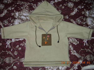 Продам толстовку для девочки, фисташкового цвета, тепленькая, х\б, б\у в хорошем состоянии. Длина по спинке - 36 см, длина рукава - 25 см. Цена 100 р.