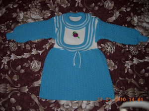 Продам комплект для девочки: платье+штанишки. Машинная вязка. Все новое. Длина рукава - 20 см, длина по спинке - 35 см. Штанишки: длина по внешнему шву - 40 см, длина по внутреннему шву - 23 см. Цена 70 р.