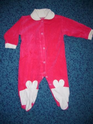 300руб.На возраст примерно 5-6мес. Шаговый шов 18см, по спинке от шеи до промежности 38см. На ножках ушки зайчика!