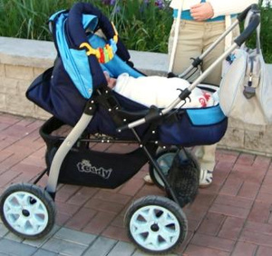 В комплект входит противомоскитная сетка, дождевик, сумка переноска, запасное колесо;