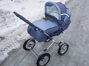 Продам коляску б\у. Расцветка-синяя с с белым клетка. На резиновых колёсах. Продаю как трансформер, хотя к ней есть и короб в отличном состоянии(не пользовались им), но потеряли капюшон от него. В комплекте тёплый зимний конверт, сумка для мамы, накидка на ноги к коробу. Спинка раскладывается до прямого состояния(можно грудничка ложить спокойно). 3000 или поменяю на сотовый в отличном состоянии. Смотреть на Кропоткина в любой день вечером или утром.