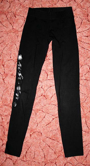 Лосины х/б , плотные, украшены стразиками и надпись из кожи приклеена. размер116. длина штанин 76см.