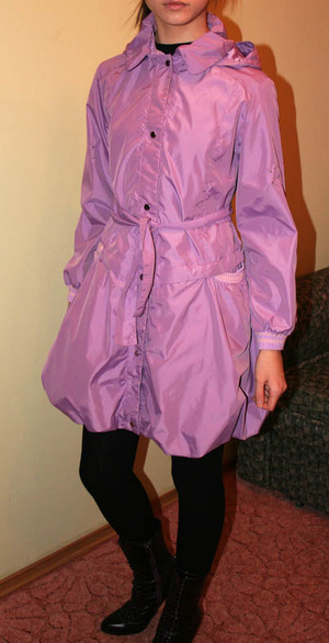 Плащ-ветровка на рост 152см, внизу - сборка на резинке, состояние очень хорошее, капюшон отстегивается. Стоимость - сколько предложите.