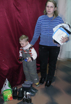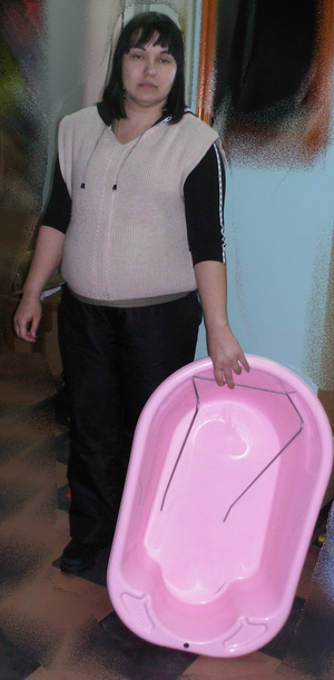 Настя - мать-одиночка троих детей. Младшей Карине 1,5 месяца. Семья получила в дар коляску для малышки, памперсы, слипы и комбинезоны. Утюг для Валентины - матери-одиночки 4 дочерей.