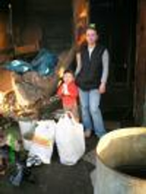3 года назад у них с бабушкой сгорел дом. Кое-как они отстроили дачный домик и в нем в одной комнатушке живут на Золотой горке. Воду Настя носит с колонки очень далеко. Работает только бабушка. Ребятишки ездят в школу на трамвае. Еще у них есть собаки, которых бабушка кормит.