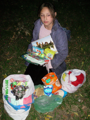 Соне поравились обручи для волос и заколки, книги, тетради, канц принадлежности. (Соню перевели в другую школу и мама до сих пор не может ей купить ни учебники по новой программе, ни остальное, а Соню дразнят в школе одноклассники). Ходят девочки в совдеповских тоненьких курточках на тонком синтепоне. Спасает теплая кофта.