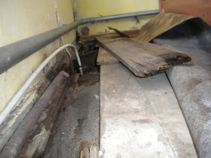 2. Где был порыв трубы вода текла под пол и доски покрылись плесенью. Требуется замена.