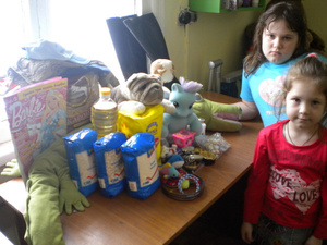 Игрушки для малообеспеченный ребятишек, одежду, обувь. Раздать все в полной мере мы не успели, но все малообеспеченные мамы-одиночки и многодетки в деревне знают, в каком доме раздается помощь. Что и было сделано по нашему отъезду.