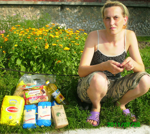Валентина - мать-одиночка воспитывает дочь 9 лет и племянницу - 5 лет. Получила помощь в виде одежды. Спасибо Антону и его супруге)) Также продукты питания от Романа.