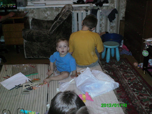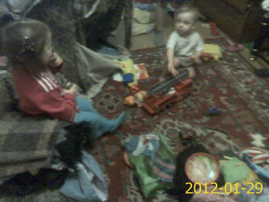 Также я завезла вещи Валентине и ее девочкам. (Сорри, батарейки сели в фотоаппарате). Девчонки радовались смешному М&М-су, пазлам, играм с фишками, игрушкам мягким. Вале досталась бордовая женская куртка большого размера. Спальных мест у ее 5 девочек нет. Спят на полу. Органы Опеки пытаются с ней работать на эту тему, но пока дело заканчивается только поклейкой новых обоев.