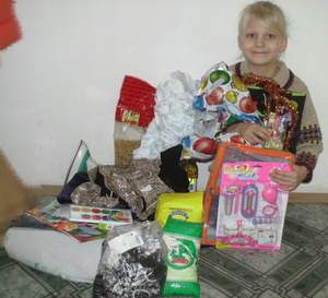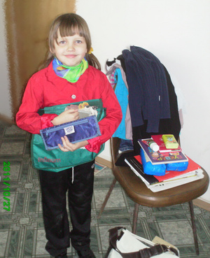 Нами были переданы вещи, правда, еще в октябре Валентине, ее дочери Дине 10 лет и для ее племянницы Сони - 6 лет, которую Валентина воспитывает. Девочка очень была рада безделицам, одежде, канцелярии. Спасибо!!!