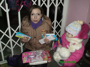 Виктория одна воспитывает дочь 2,5 лет. Работает в детсаду помощником воспитателя. Отец ребенка в воспитании не участвует, не занимается ребенком, не содержит. Вика снимает жилье. Работает помощником воспитателя. Работать ей еще 1 год, чтобы дочь не потеряла место. На что она умудряется жить вдвоем с дочерью остается только догадываться. Девочки на работе видя как она бегает в тонюсенькой осенней курточке и тоненьких брюках надумали ей скинуться на теплые штаны к НГ. Вике мы передали одежды на нее и ее дочу. Продукты питания. Крупы, масло подсолнечное, сахар, муку, зубную пасту для дочери, мыло туалетное и хозяйственное. Вика была тронута продуктами и одеждой. Особенно была рада меховой шубке. Которая не только теплая, но и красивая. Спасибо дарительнице!!!
