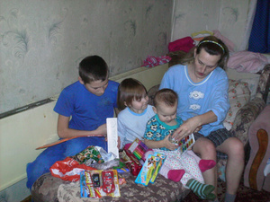 Ребятишки из не простых семей. Подарков им никто не мог подарить, а подарили очень неожиданно мы с вами, дорогие форумчане. Были подарены конфеты, сладкие подарки, соки, кондитерка, машинки, куколки, канцелярия. А именно пластилин, краски, альбомы, пазлы, карандаши, фломастеры, точилки, смешные игрушки. Картинки для разукрашивания, раскраски и т.д.