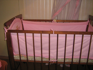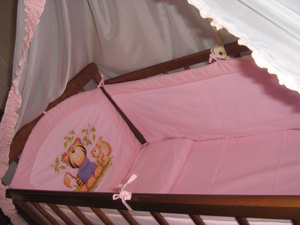 В связи с переездом продам детскую кроватку для девочки . С балдахином и всей пастелью. Кроватку можно покачивать, когда ребенок подрастет, можно поставить ее на колесики (они в комплекте). Мы пользовались 5 месяцев. Цена 8000, покупали за 12. Фото вышлю если скинете адрес смс на номер (913-702-69-04). Извиняюсь за сложности просто фото не крепится (большое).