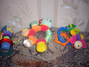 Продам игрушки(на руку игруха,музыкальный бочонок,медведь,погремухи)