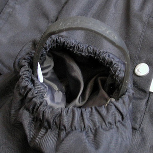 Капюшон отстегивается, штрипки тоже отстегиваются. Капюшон, воротник и отвороты отделаны мягким флисом.