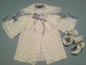 В Непоседе видела, специальные конверты на крещение, белое выбитое кружево на рубашке- безразмерной в виде длинной сорочки и на чепчике. А еще лучше если сами свяжите наряд см.фото
