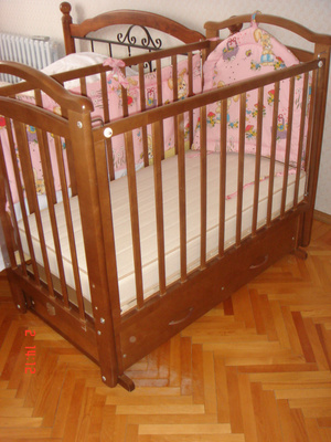 Продам кроватку ("Можга") - регулирующееся дно(на фото максимально низко), маятник(фиксируется), ящик под вещи,передняя стенка опускается.