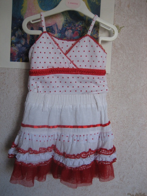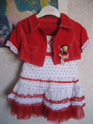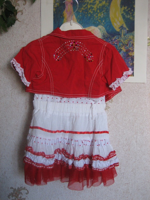 Набор - топ, пиджачок,юбочка, пояс. Очень нарядный. Маркировка 1, подозреваю, что на год до 80 точно. Так ни разу и не одели, но постирала. 500 руб