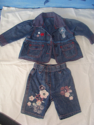 1. Джинсовая классика - Джинсы LEVI'S, размер 5, т.е. на 5 лет приблизительно. Темно-синяя джинса с потертостями на карманах. Изнутри пояс регулируется утяжкой. Пуговицы - иммитация ограненного стекла, заклепки на карманах тоже какие-то блестящие. Цена 700 руб.
