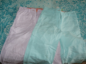 2. Летние х/б брючки SELA, р-р 98, на зеленых сзади заплатка, отдам двое за 100 р.