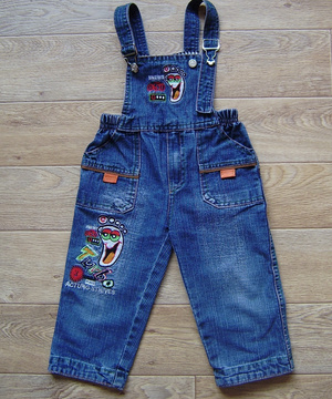 Джинсовый полукомбинезон, талия на резинке, лямки регулируются, на рост 86-92 см, внутр.шов штанов - 30 см. Цена 150 руб.