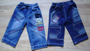 Джинсы GJ, возраст 12 мес., рост 76/86 см, внутр.шов - 28 см, цена 150 руб. на фото слева