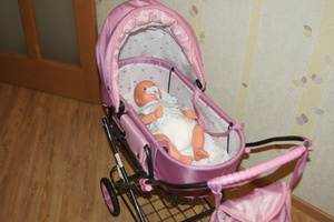 Продам коляску для куклы, б\у (польская), в отличном состоянии (ребенок почти не играл). Можно использовать как в "зимнем" варианте (с коробом), так и в летнем. Высота ручки от пола 72 см. Имеется сумочка. Цена 2300 руб. Пупс для коляски в подарок (плачет, дышит, сосет соску, закрывает глаза).