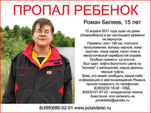 Пропал ребенок,Новосибирск - Беляев Роман 15 лет