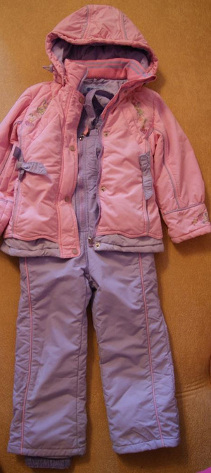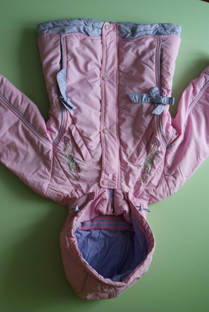 В комплект входят штаны-комбинезон и курточка.