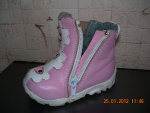 Продам демисезонные ботиночки Шаговита на девочку с утеплителем размер 20, по стельке 13 см. Натуральная кожа, войлочный утеплитель, войлочная стелька. Очень удобные, по бокам два замочка. Состояние идеальное, носили малоо, в коляске. Цена 400 рублей.