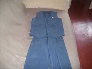 Костюм на мальчика 5-7 лет, жилет удлиненный и брюки (длина регулируется), цвет темно - серый, шили на заказ, б/у раза 3.