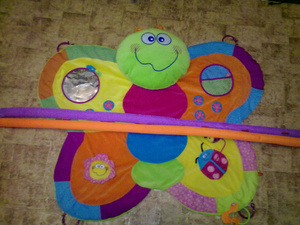 Игровой развивающий коврик "Бабочка" с дугами(на фото не пристегнуты), с минимальным набором пристегивающихся игрушек, в хорошем состоянии, только псевдозеркало от стирки помялось. 500р. забирать на западном. мой телефон есть в профиле.Забирайте за 400