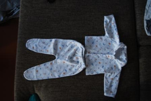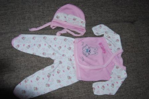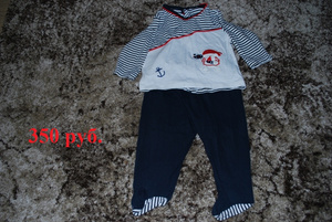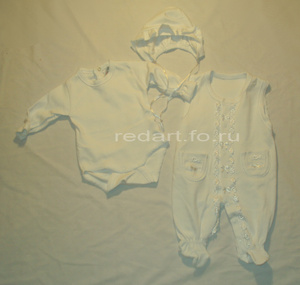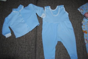 1)костюмчик для новорожденного из трех предметов - шапочка, ползунки и распашенка (теплые), почти новые, одевали несколько раз и выросли, от 0-3 мес. - 150 р.