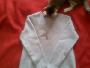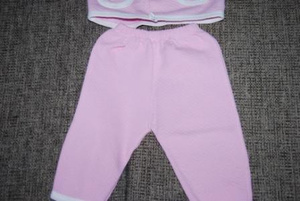 3)теплый костюмчик, длина штанов- 53 см., длина кофточки от горловины до конца рукава - 32 см.- 200 р.