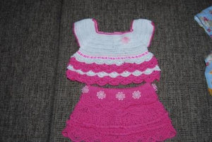 Продам вязаный комплект- новый. Ручная работа, неповторимый экземпляр. Длина кофточки - 17 см., длина юбочки - 16 см. (можно носит как с заниженной талией) - 500 р.