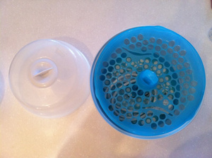 Электрический паровой стерилизатор вмещает в себя до 6 бутылочек разным объемом, а также принадлежности к ним.
