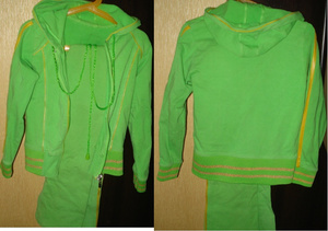 Спортивный костюм х/б. В капюшоне распустился шнурок, брюки 74 см. олимпийка -43 см, рукав 45см. рост 100-120см.