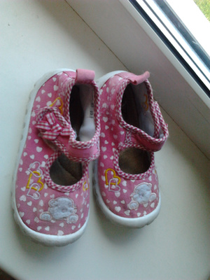 Туфельки текстиль б/у розовые с белыми сердечками р.23 Forio цена 100р