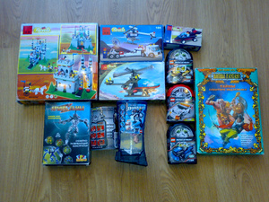 Конструктор Лего: замок, грузовик и вертолет, еще вертолет, 4 машинки, б\у, все части в наличии. 3 робота-трансформера, игра "Тайны забытого подземелья". Машина на радиоуправлении работает, но ездит только назад.