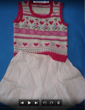 Костюм юбка (регулируется на талии) - 30 см, жилет - 36 см. рост 105 см.