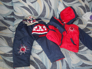 1. Комбинезон зимний очень теплый, на возраст 1-2 года. Состояние хорошее. Носил один ребенок на санках и в коляске. Цена 1000 руб.