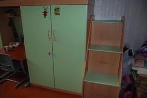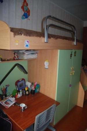 Продам мебель в детскую комнату - кровать с ограничителем на 2-ом "этаже", шкаф пенал с полками, ступеньки - 3 ящика для игрушек и всяких мелочей, под кроватью плательный шкаф + полки, письменный стол (встраивается под кровать на место парты) с выдвижными полками для клавиатуры (2 шт. выдвигаются на 2 стороны), выдвижной ящик под стол (можно поставить и отдельно как на фото). Стол разобран, поэтому сфотографировать невозможно- можно посмотреть во время приезда. Парта и стул на фото не продаются. 10 000 р. Возможен торг.