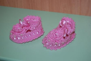 Продам очень нарядные новые розовые пинетки на девочку (ручная вязка) - с рождения до 6-7 мес. Очень подходят на кристины. 150 р.