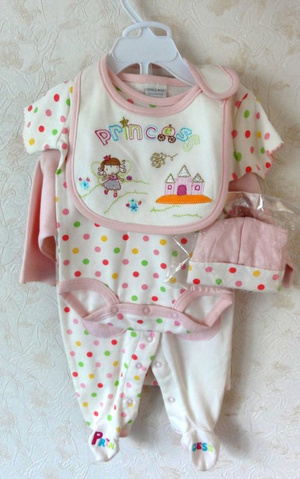 Абсолютно новый комплект для новорожденной (0-3 месяца)! 5 чудесных вещей (пелёнка, слюнявчик, ползунки с длинными рукавами, кофточка с короткими рукавами и шапочка), мягкая хлопковая ткань. Брали за 1850 руб. в подарок, но подарить не получилось. Так как нет этикетки, отдам за 1350! Можно взять для подарка!