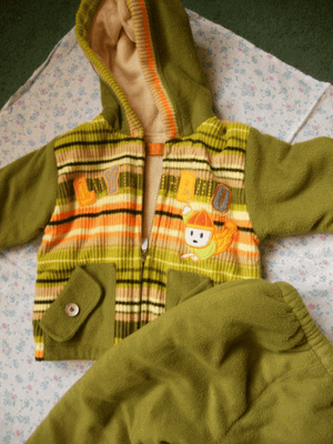И курточку в отличном состоянии на 3 года примерно. Универсальной расцветки. Внутри желтенький флис. Цена 300 руб.