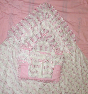 Конверт на выписку для девочки очень нарядный. В наборе- 3 чепчика,3 распашонки, 2 пеленки+ уголок,подушка с наволочкой,теплое одеяло в пододеяльнике,лента. Использовался один раз,все в идеальном состоянии. Смотреть на Выборной.