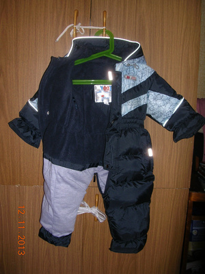1. голубой - утеплитель шерсть (подстежка снимается), в комплекте варежки и валеночки текстиль с утеплителем - размер/рост 80 ( мы носили до года) - 1000 руб