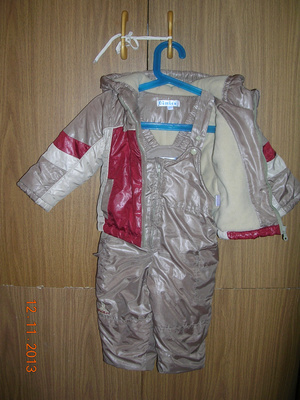 костюм Mothercare (утеплитель + флис, на температуру до -10) 90-100 можно носить сотояние на 4 и ботинки Сорель (резиновый низ, мембрана, внутри шерстяной сапожок, цвет голубой) размер 10 - 16 см - за все 500 р.
