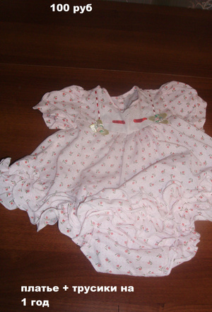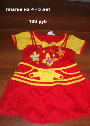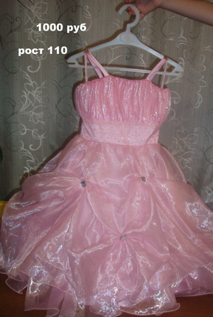 Нарядное платье где-то на рост 110-120. Очень комфортное. 500 рублей.